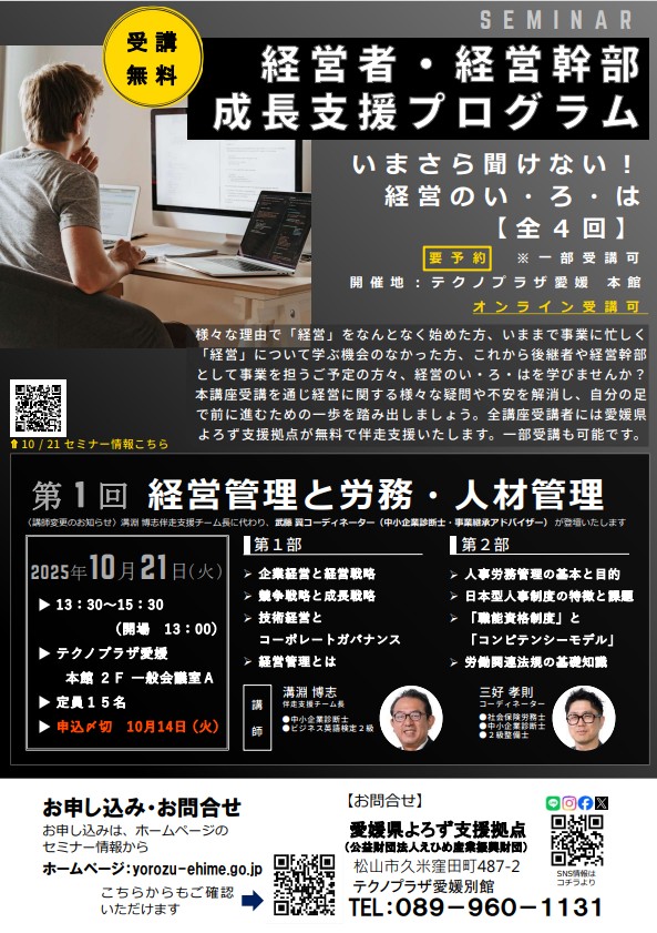 新年あけましておめでとうございます旧年中は愛媛県よろず支援拠点をご利用いただき、誠にありがと...