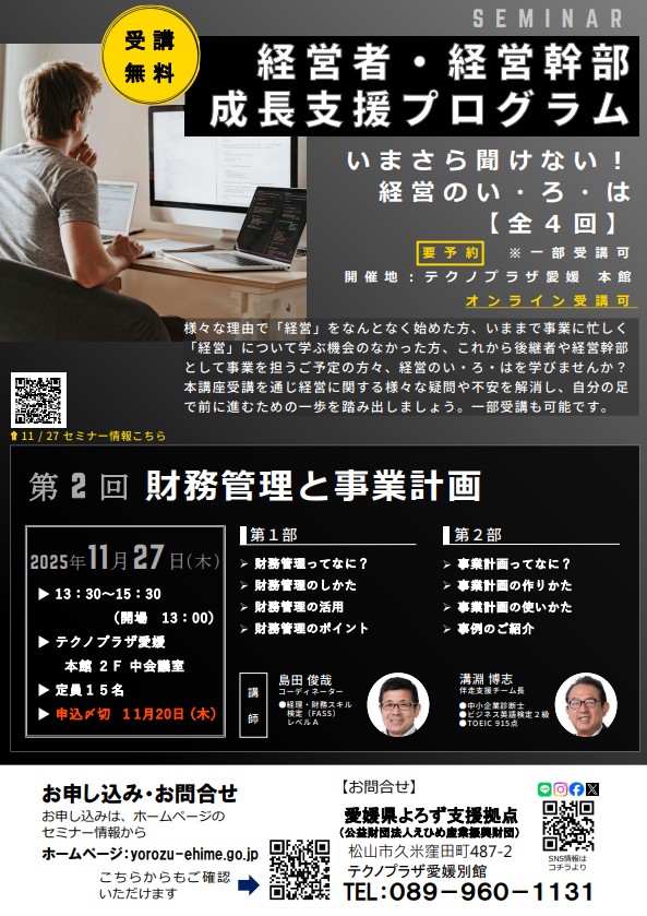 愛媛県よろず支援拠点は無料経営相談窓口です